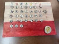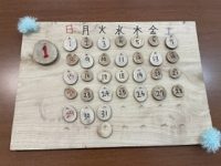 山本先生、見勢井先生、升本先生に『カレンダー作り』のご指導いただきました。縦30cm横50cmの板の上に31日分の丸い木を差し込んでいきました。次に月を表す大きめの木で1月から12月を書きました。低学年はこの木をノコギリで3枚切りました。高学年は6枚切りました。みんなとても上手に切ることができました。さらに、日曜日から金曜日の板をつくっていきました。9月のカレンダーが完成しました。そこからは、一人ひとりが工夫をしていきました。「カープの色で塗りました。」「四季折々の絵を描いていきました。修正ペンを雪にしてみました。」「きれいな海を描きました。」「コリントゲームができるようにしました。」「自分の課題を明確にし、10日ごとに日にちを二重で描いて、気がつくことができるようにしました。」など、たくさんの工夫を発表することができました。先生方から、「60年も生きた木が皆さんの手元にあります。さらに60年生きていけると思います。大事に使ってください。万年カレンダーです!これからずっと使い続けることができたらいいですね。」と話されました。